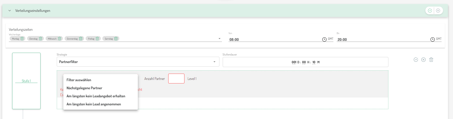 Ab sofort stehen Ihnen zwei zusätzliche Partnerfilter für die Leadverteilung zur Verfügung: