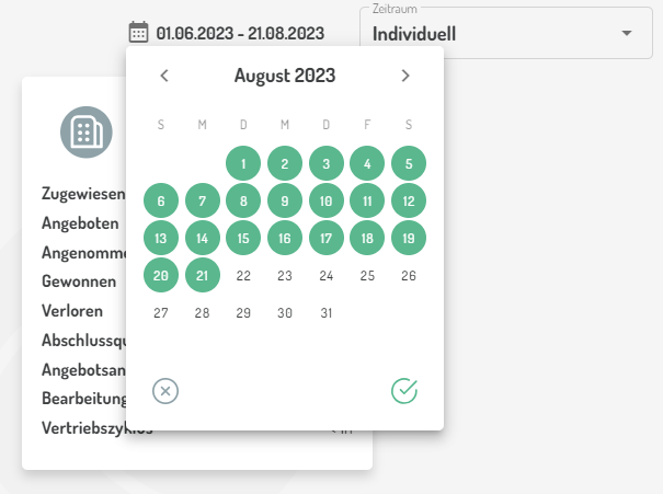 Angenommen am (nur verfügbar für Kennzahlen "Angeboten", "Gewonnen", "Verloren") |