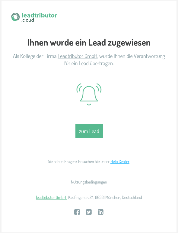 Wird einem Kollegen Ihrer Firma ein Lead zugewiesen, erhält dieser Kollege nun eine Email-Benachrichtigung darüber.
