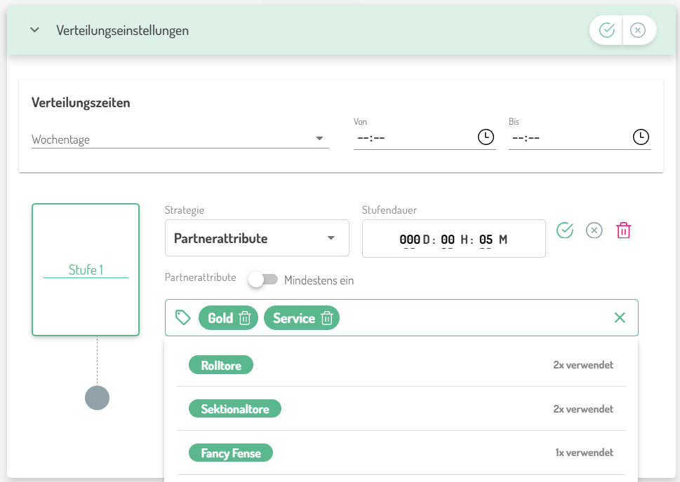 (Abbildung: Konfiguration der Verteilungsstrategie "Partnerattribute")