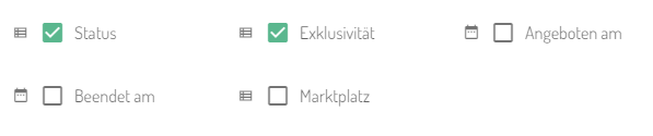 Filter für die folgenden Tabellenspalten: Einmal gesetzte Filter bleiben erhalten, bis die Leadangebote-Liste erneut geöffnet wird. |